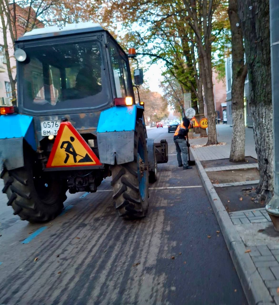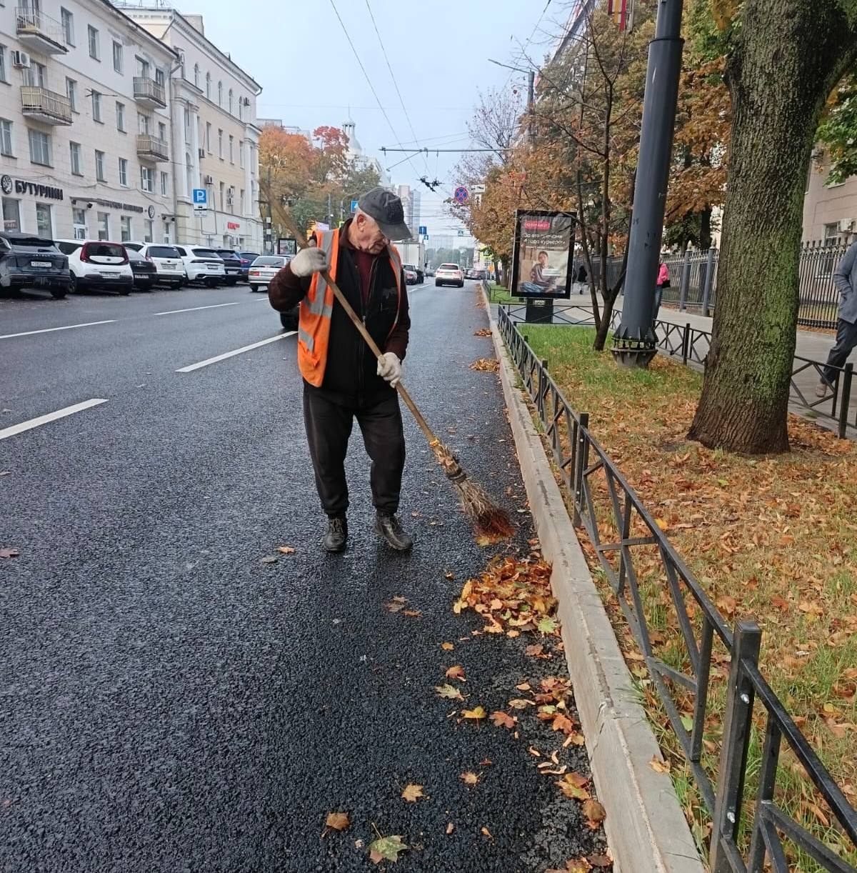 С раннего утра идет уборка дорог, тротуаров, общественных пространств. Специализированные уборочные машины, которые являются незаменимыми помощниками для эффективной уборки и содержания городских территорий, проводят необходимые циклы уборки на улично-дорожной сети. В числе основных сезонных работ уборка опавшей листвы, которая зачастую становится причиной засорившихся ливневок.