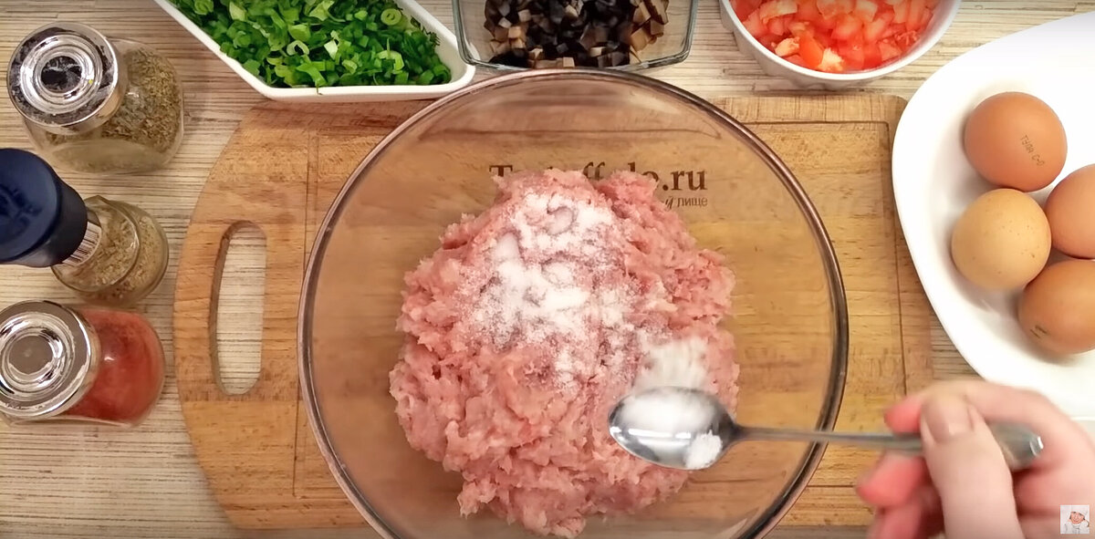 Для начального этапа необходимо подготовить фарш. Он должен быть тщательно перемешан с солью и любимыми специями – сладкой паприкой и молотым черным перцем. Фарш можно использовать как куриный (например, из бедер и грудки), так и любой другой – на ваше усмотрение.