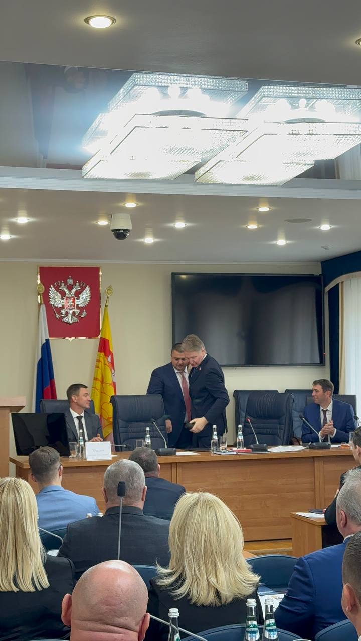 Владимир Ходырев уступает Андрею Дьяченко место в президиуме - спикерское кресло