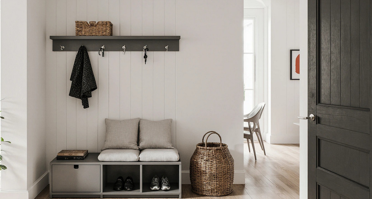 Прихожая – это первое, что видят гости, но она также часто становится жертвой хаоса. Чтобы избежать беспорядка с такими вещами, как ключи, перчатки и сумки, стоит внедрить несколько полезных решений. Полка с крючками для одежды и органайзер для ключей — это простое, но эффективное решение для поддержания порядка. Корзины для аксессуаров и обуви сделают ваше пространство более функциональным и стильным.