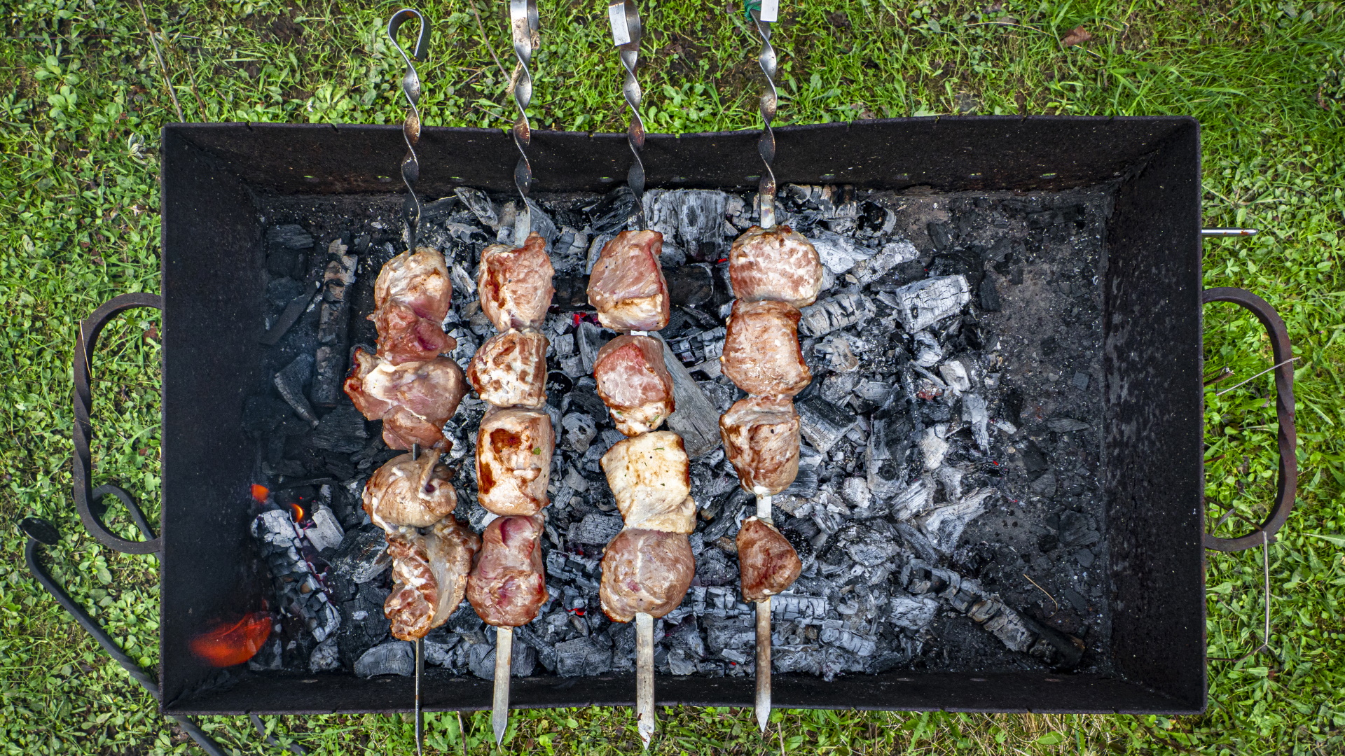 «Перед жаркой можно полить сам шампур маслом. Тогда происходит процесс образования корочки. Без него не получится.