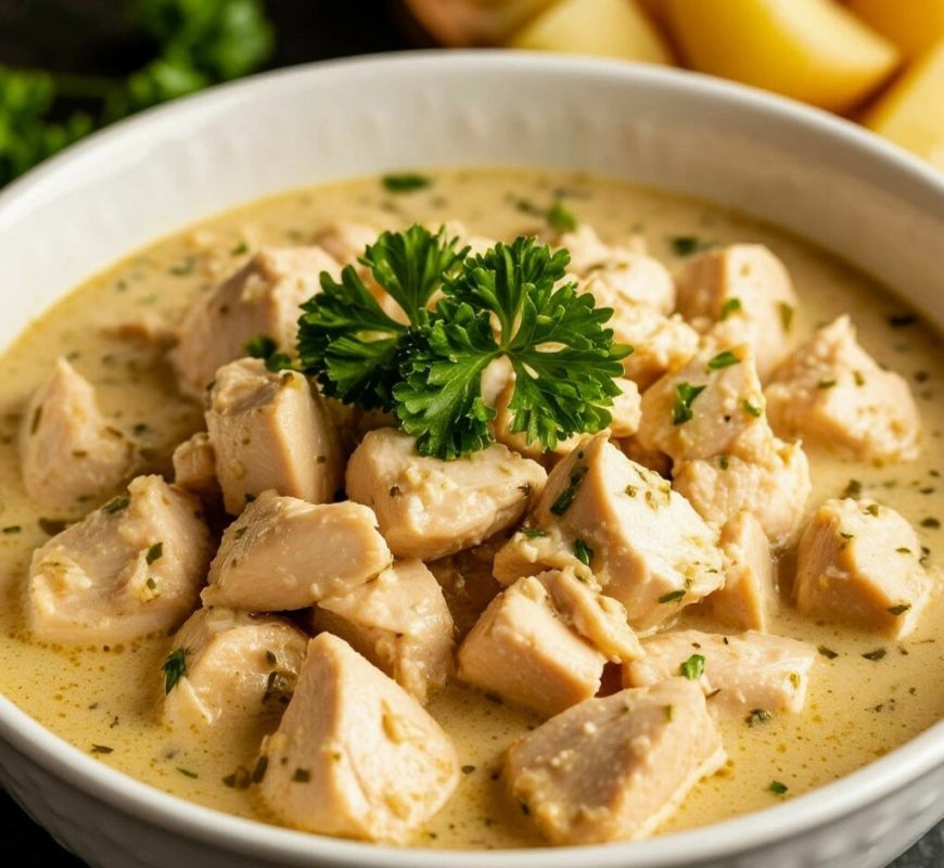 Сочные и аппетитные кусочки курицы, покрытые золотистой корочкой, томятся в бархатном сливочном соусе, превращая обычный ужин в кулинарный праздник. Это блюдо не только порадует ваш вкус, но и украсит стол, подчеркивая его изысканность и домашний уют.