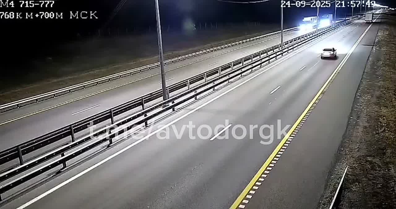 «Водитель легковушки без видимой причины делает резкий разворот прямо посреди скоростной магистрали и выезжает навстречу потоку. Предсказуемо — его путь обрывается у ближайшей фуры, водитель которой явно не ожидал такого «маневра», – комментирует происходящее ГК «Автодор».