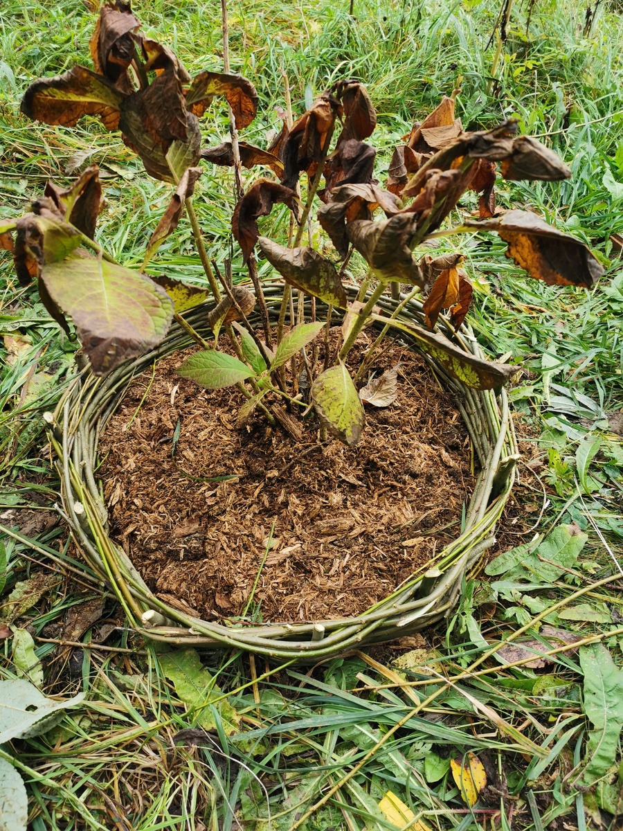По завершении процесса плетения ограда станет не только защитой для гортензии, но и стильным украшением сада. Постепенно, со временем, плетеные конструкции приобретут темный, коричневый оттенок, что сделает их еще более гармоничными в ландшафтном дизайне. Такое решение позволяет забыть о пластиковом окружении и природным образом интегрировать оформление с природой, делая участок более сердечным и уютным.