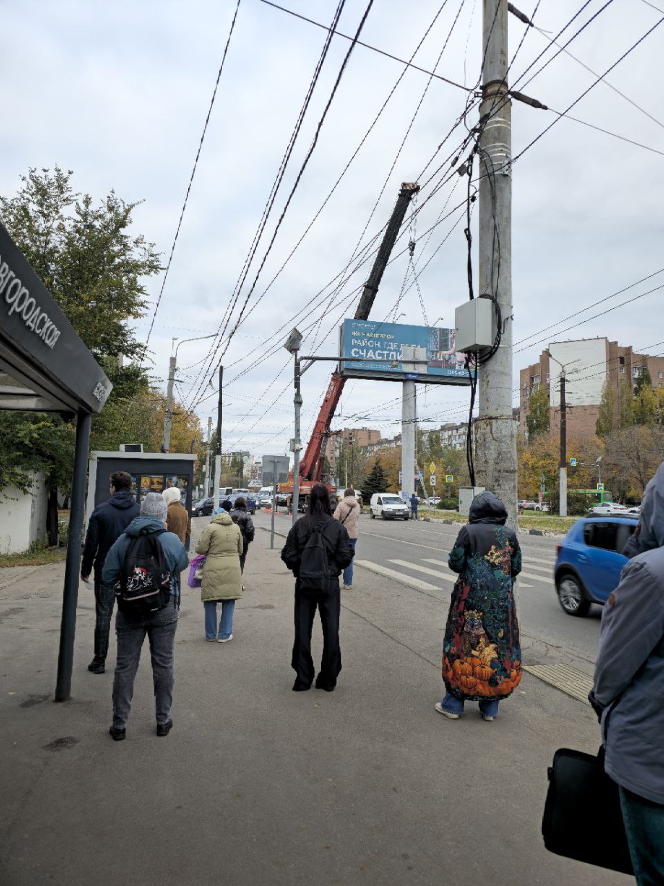 На пересечении Новгородской и Хользунова в час пик рекламный щит снимают! Из-за этого пробка дикая, все на работу опаздывают. Неужели нельзя днем это сделать, когда машин меньше?
