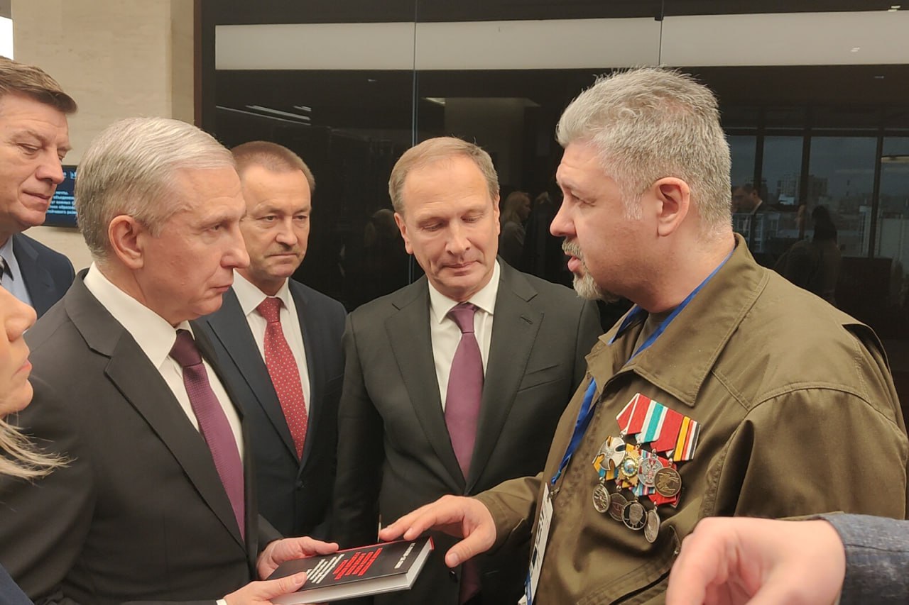 Также Сергей Трухачев встретился с участником СВО и членом Общественной палаты РФ Максимом Григорьевым, который представил книгу о военных преступлениях киевского режима и вручил Сергею Трухачеву экземпляр издания.