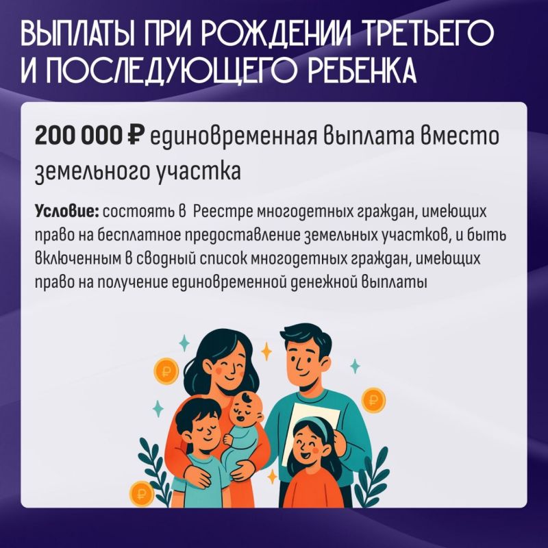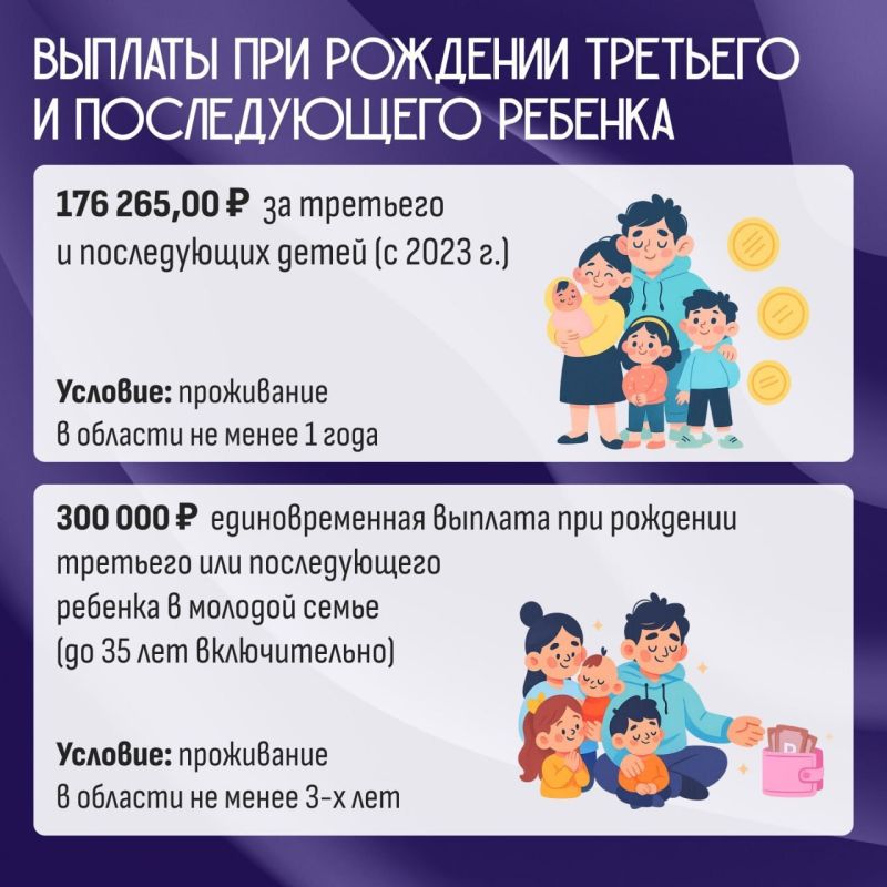 Какие меры поддержки предусмотрены для многодетных семей в Воронежской области? Все ключевые региональные выплаты — в карточках.