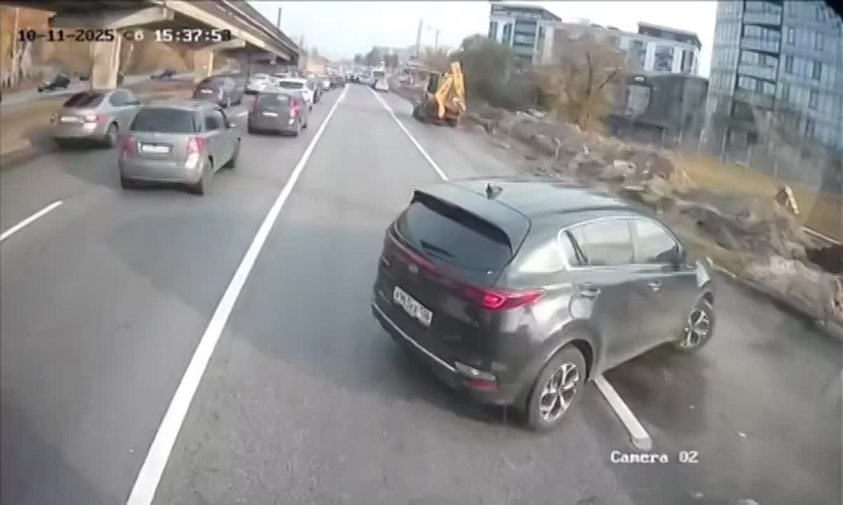 Водитель кроссовера решил свернуть наперерез автобусу и даже не включил поворотник.