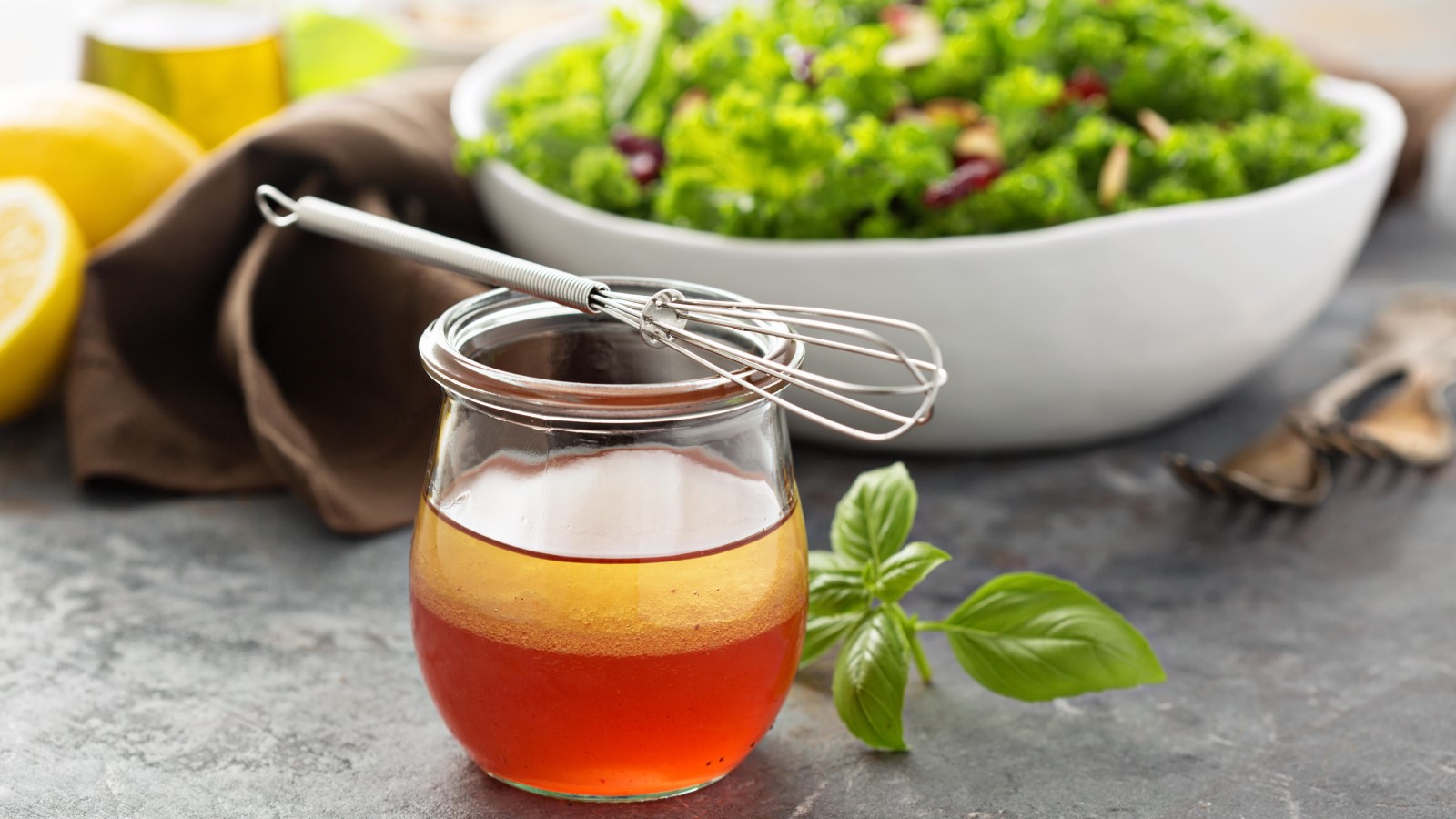 Остается посолить, поперчить, добавить свежий или сушеный орегано, взбить массу венчиком и заправить салат. Для этого достаточно будет половины приготовленной смеси. Остатки можно вылить в банку и хранить в холодильнике до трех дней, пишет Telegram-канал Real Food.