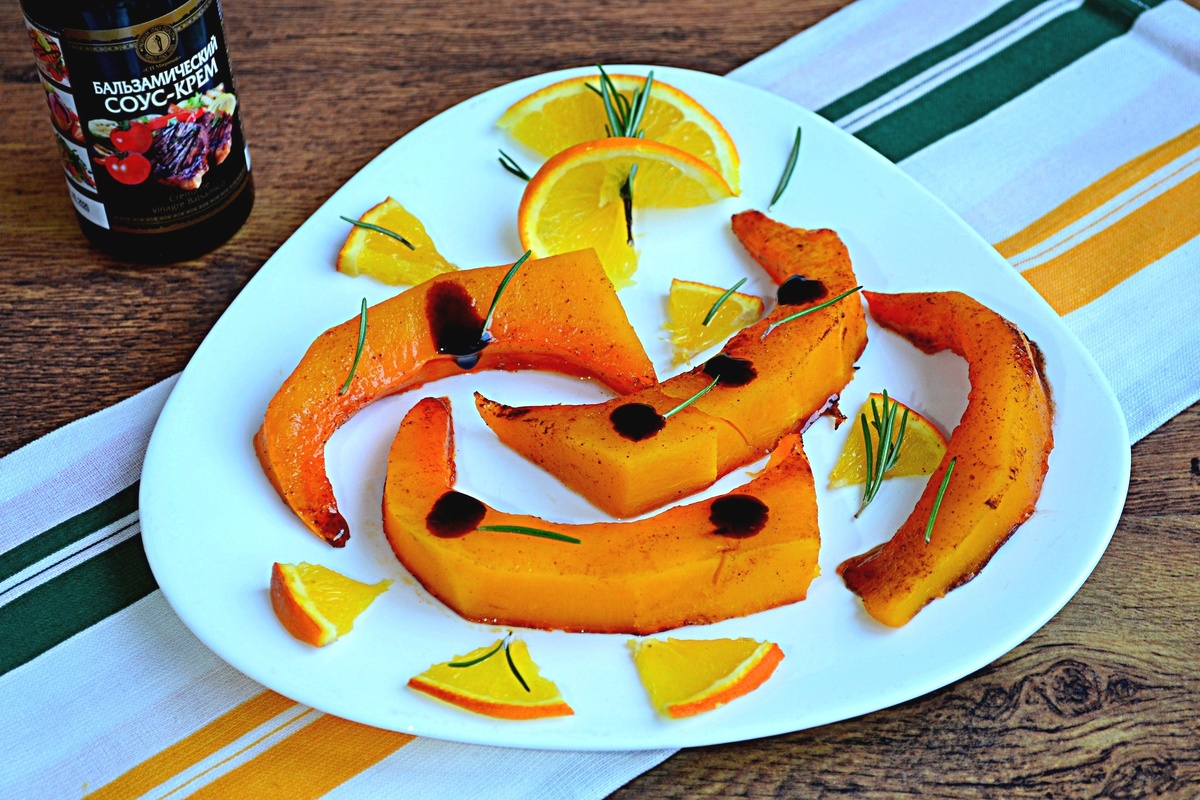 Когда блюдо будет готово, полить его медом и подавать. Для тех, кто предпочитает холодные десерты, можно дать тыкве остыть — она будет вкусной в любом виде. Особую изюминку придаст подача с бальзамическим кремом, который дополнит вкусовую палитру.