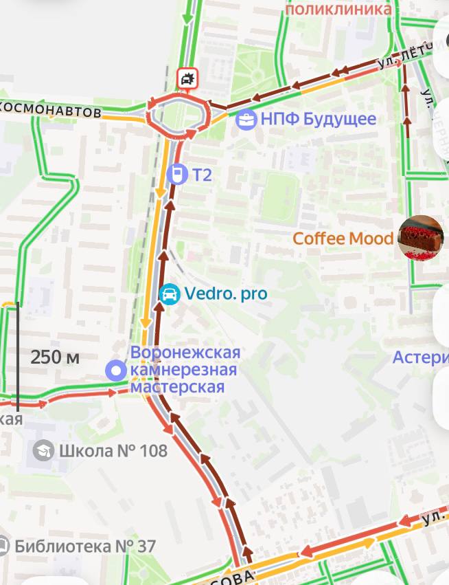 Движение затруднено по улицам Ворошилова и Летчика Колесниченко.