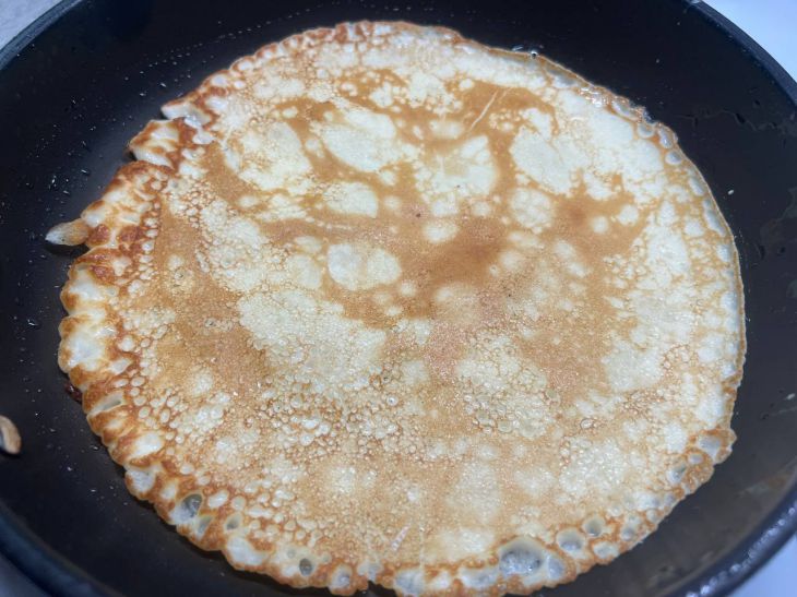 Только тогда аккуратно подденьте блин и переверните одним уверенным движением.
