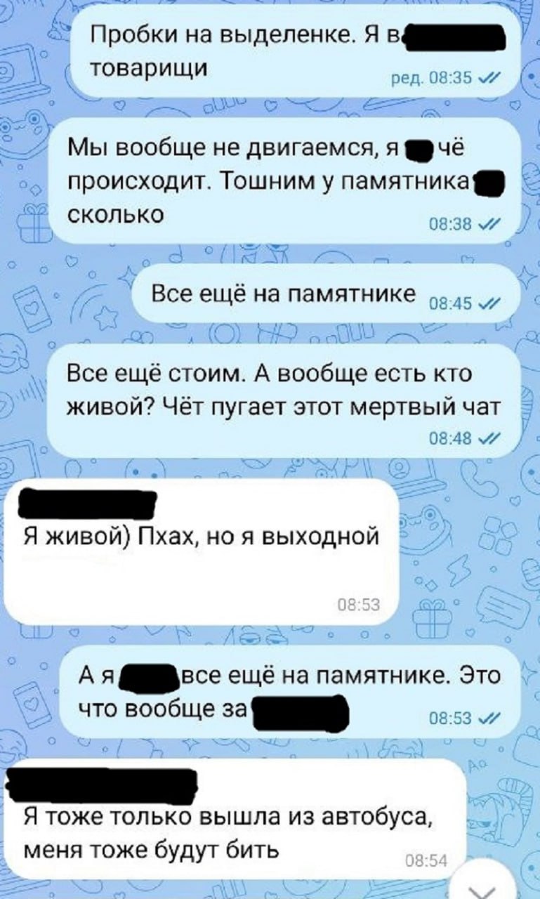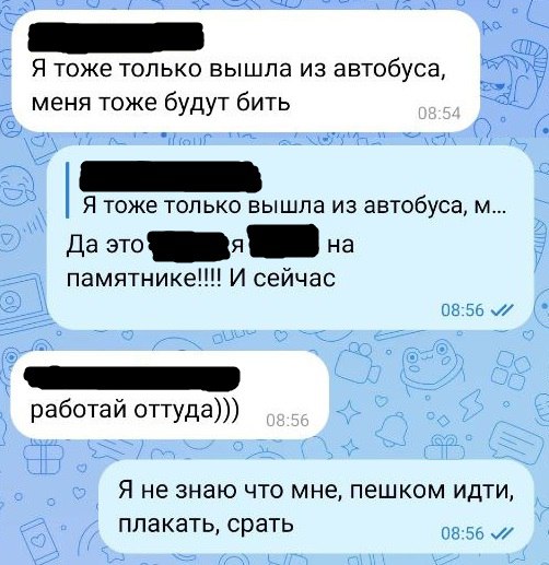 08:54 – Я тоже только вышла из автобуса, меня тоже будут бить.
