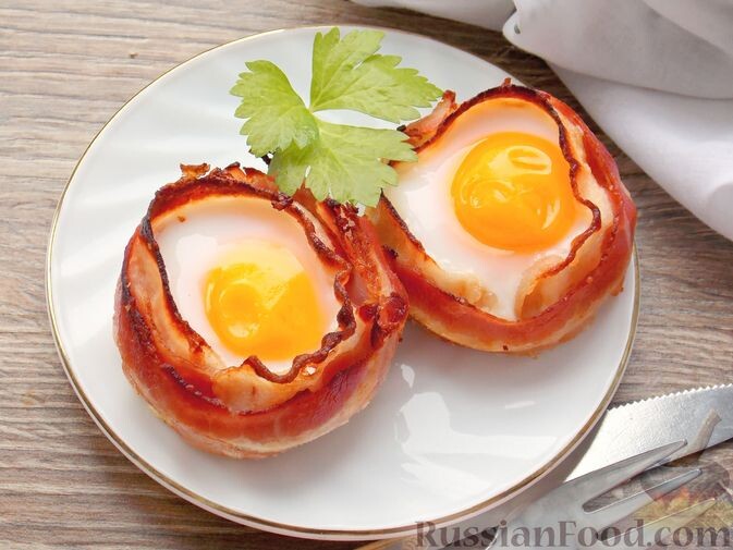 - Яичница в гнёздах из бекона: Хрустящие корзинки из бекона с яичной начинкой – это идеальный способ начать день. Бекон обжаривается до золотистого цвета, а затем в каждую кружку выкладывается яйцо. Подавать лучше всего на голодный желудок!