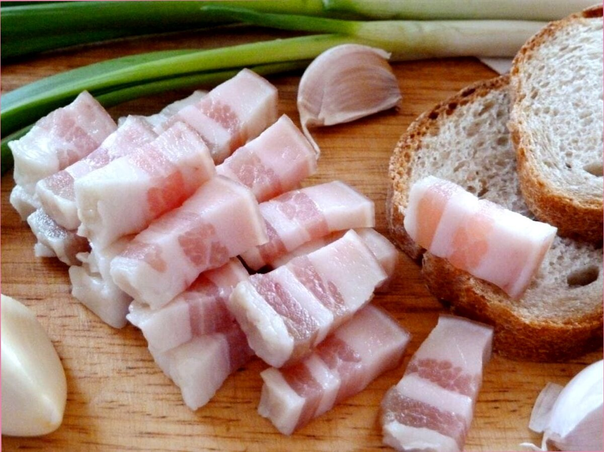 Ингредиенты: Сало — 1 кг, крупная соль — 150 г, перец душистый — 1 ч. ложка, лавровый лист — 2 шт., чеснок — 3-4 зубчика, вода — 200 мл. Вскипятите воду с солью и специями, залейте этой смесью нарезанное сало и оставьте в холодильнике на 7-10 дней.