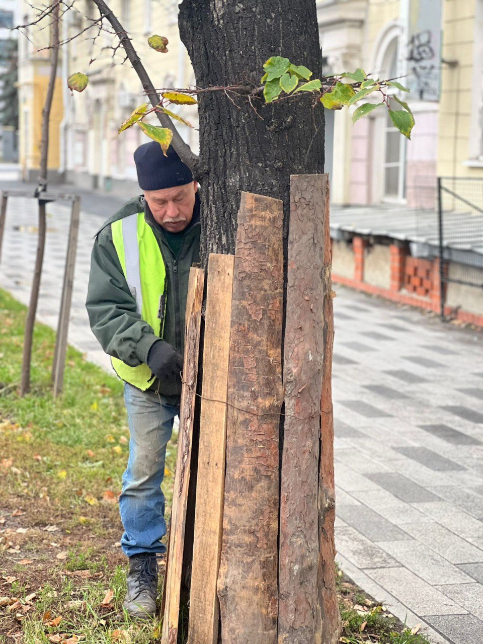 Предстоящей зимой сотни деревьев на магистральных улицах Ленинского района получат своеобразную страховку.