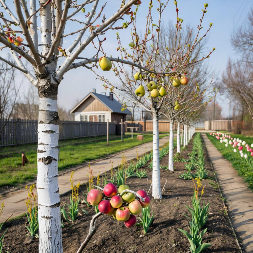 Во время нанесения важно равномерно покрыть не только ствол, но и основание скелетных ветвей на одну треть их длины, чтобы защитить наиболее уязвимые части дерева. Работы следует проводить в сухую погоду, чтобы состав хорошо высох и закрепился на коре.