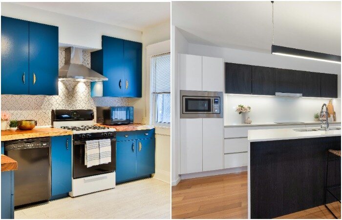 Важно открывать дверцы глянцевых фасадов только за ручки, чтобы избежать отпечатков пальцев.
