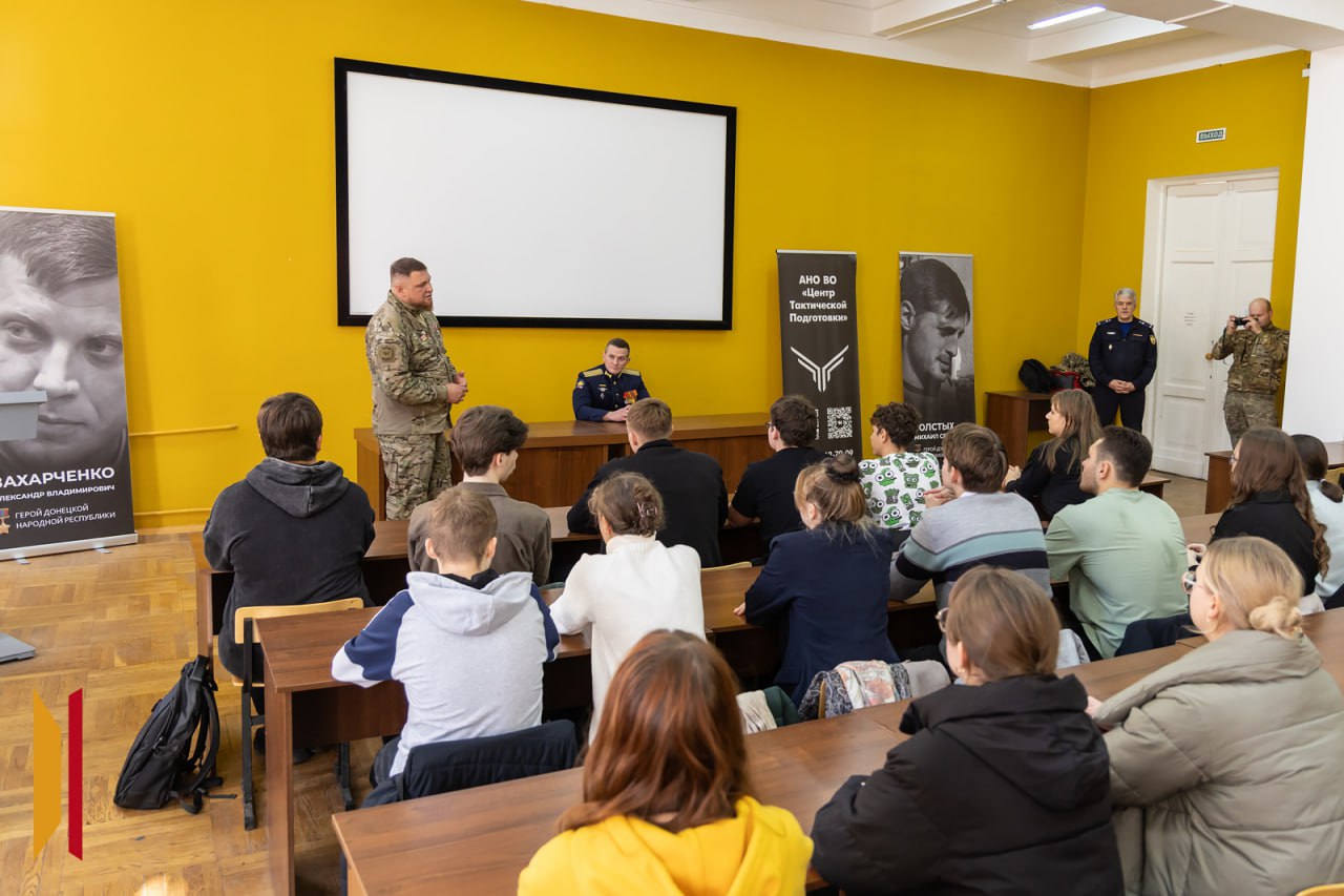 Денис Рубащенко на встрече со студентами рассказал и о своем «Центре тактической подготовки», в котором за месяц можно пройти бесплатное обучение по нескольким дисциплинам – огневой, тактико-специальной, медицинской и инженерной подготовке.