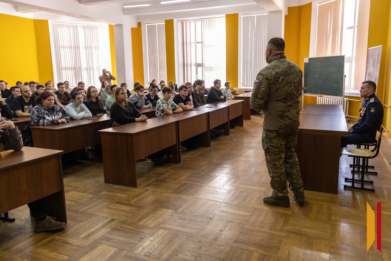 Во вторник, 28 октября состоялась встреча студентов с ветеранами СВО и участниками региональной программы «Герои земли Воронежской». Темами открытого диалога стали актуальные вопросы: «Причины СВО» и «Современные угрозы». На встречу к студентам вуза приехали ветераны СВО Денис Рубащенко и Илья Полуян, которые поделились своим личным опытом участия в спецоперации, а также обсудили острые вопросы, и вместе попытались разобраться в геополитике, чтобы у молодых ребят было в ней больше понимания.