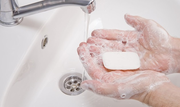 - Второй шаг: Используйте мыло, массируя руки не менее 20 секунд, чтобы удалить все загрязнения.