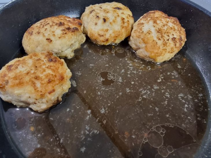 Обжаривайте котлеты на среднем огне по 3–4 минуты с каждой стороны до золотистого цвета. Не переворачивайте их слишком часто, чтобы не нарушить корочку.