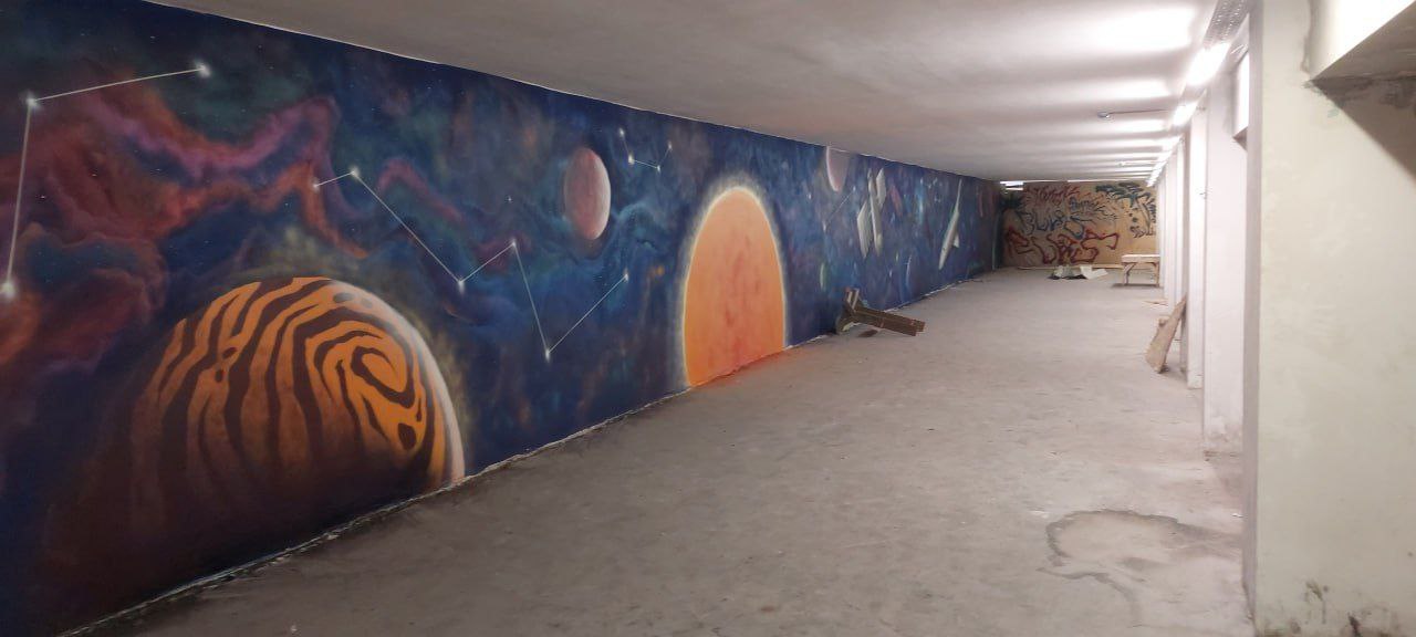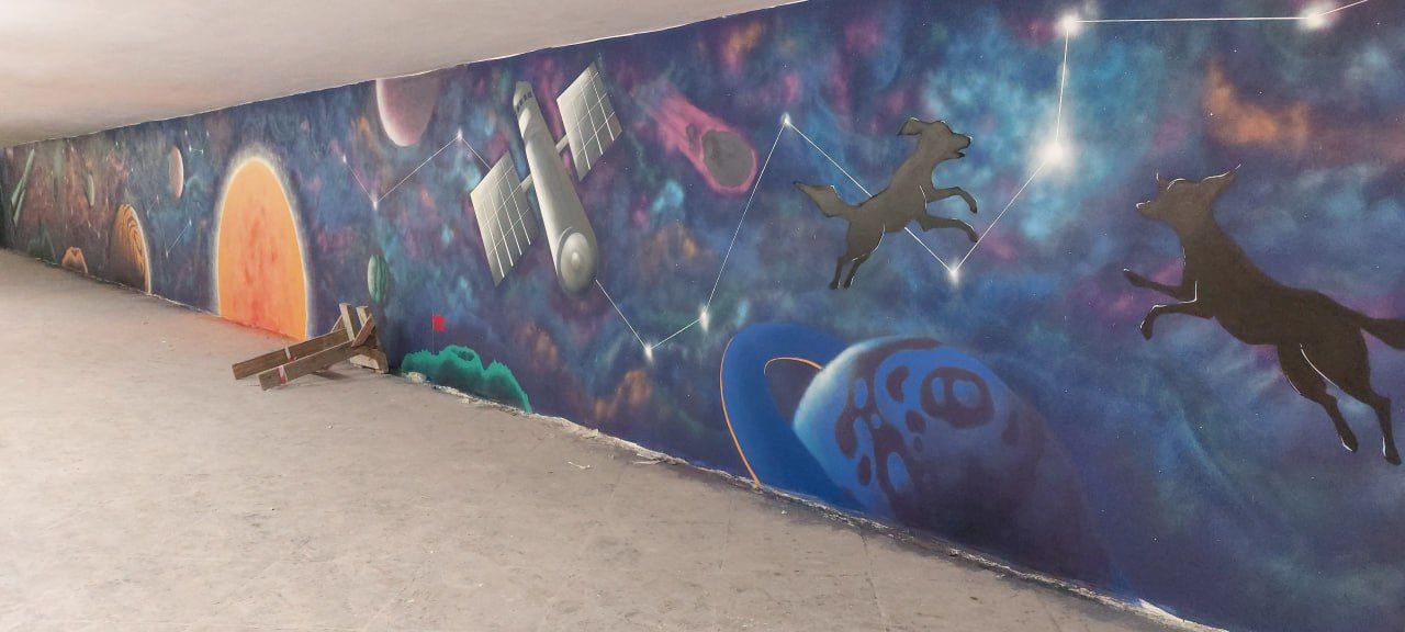 В подземном переходе на улице Ворошилова стены приобрели тематику космоса