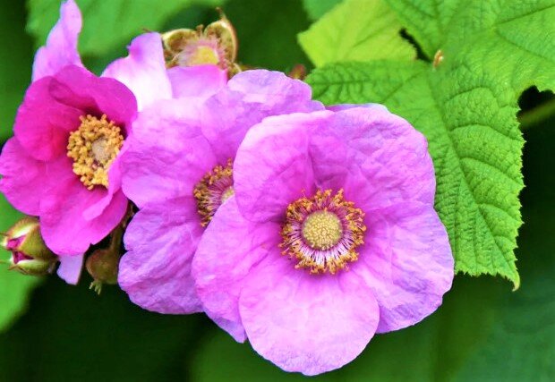 Одним из главных преимуществ душистой малины является ее способность радовать глаз и наполнять сад приятным ароматом. Цветы, в отличие от обычной малины, отличаются крупными размерами — до 6 см в диаметре — и удивительным запахом, напоминающим зеленое яблоко. Эти кустарники служат отличным медоносом, привлекая множество полезных насекомых, что позитивно сказывается на других растениях в саду.
