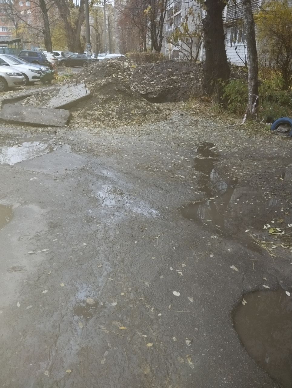 Преодолевать квест с перемещениями по грязи им приходится во дворе многоквартирного дома 2А по улице Туполева.