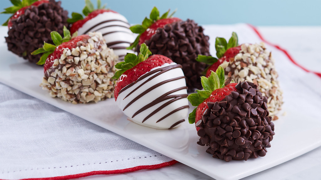 Шаг 4: При желании, украсить ягоды орехами, кокосовой стружкой или посыпкой сразу после окунания в шоколад, чтобы украшения прилипли к шоколаду.