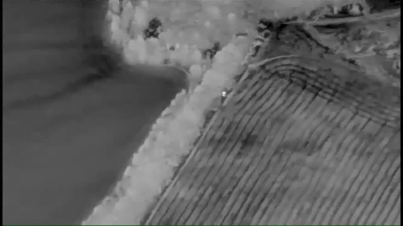 Местность "за год" никак не изменилась, первый прилет приходится по лесополосе, второй в лесной массив позади. Кадры одинаковые, включая взрывы и последствия детонации.
