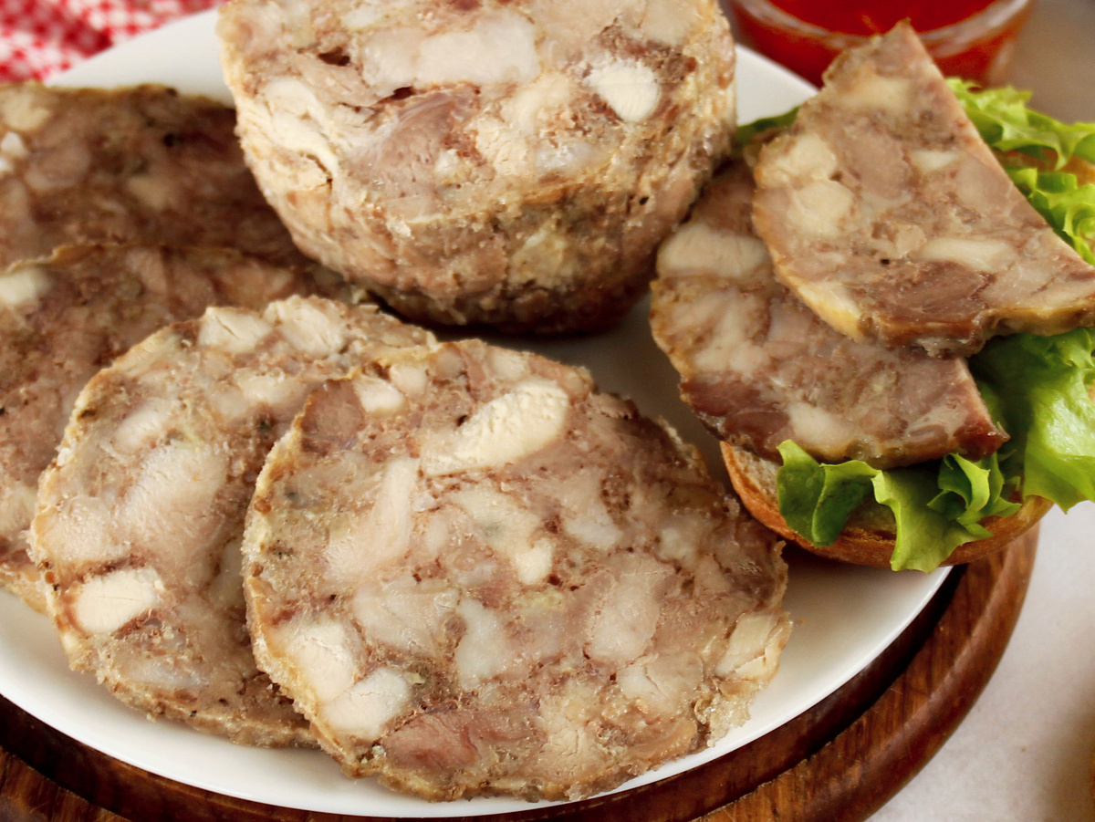 4. Важный ингредиент — желатин. Его следует равномерно распределить по подготовленной мясной массе, что поможет зафиксировать форму во время остывания.