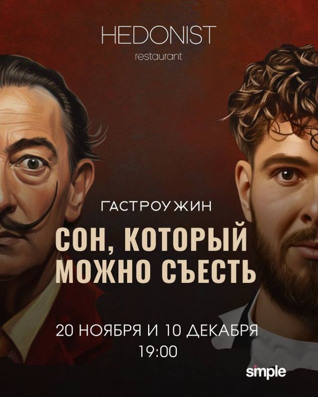 20 ноября в ресторане Hedonist состоится уникальное событие, которое сочетает в себе гастрономию и искусство — ужин под интригующим названием «Сон, который можно съесть». Этот вечер обещает стать настоящим погружением в мир Сальвадора Дали, художника, который умел видеть в кулинарии продолжение своего творчества.