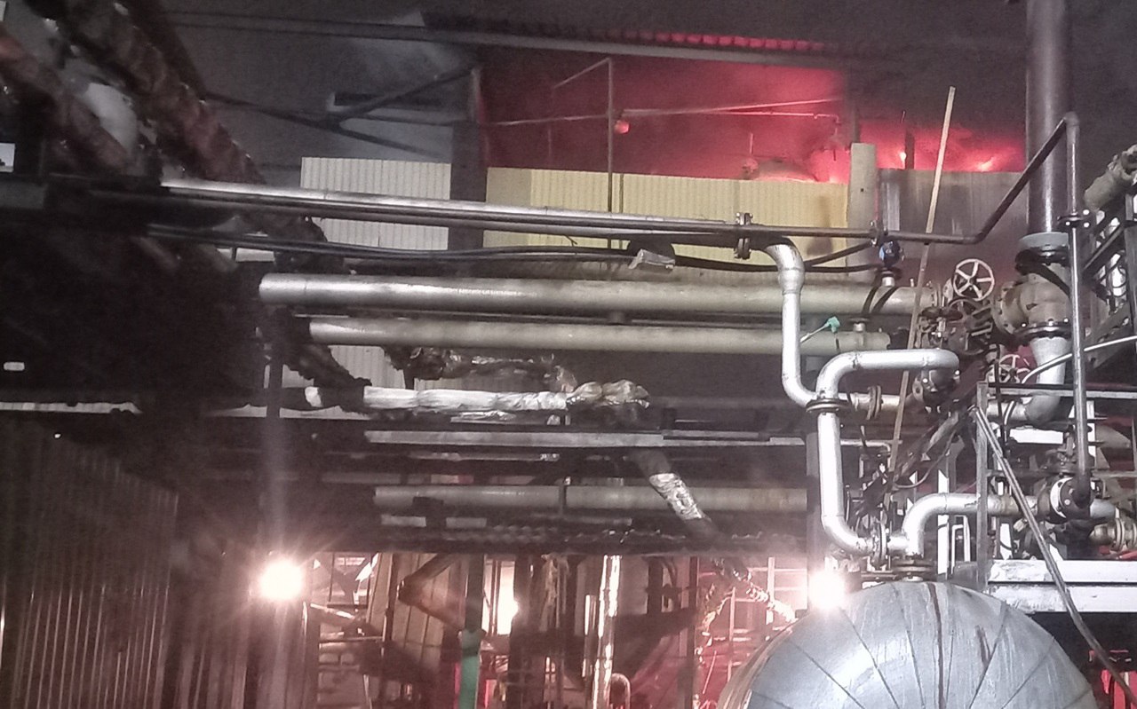 В результате ЧП в металлической реакторной установке, объем которой составляет 6 куб м, огонь повредил утеплитель и техническую арматуру на площади 100 кв м.
