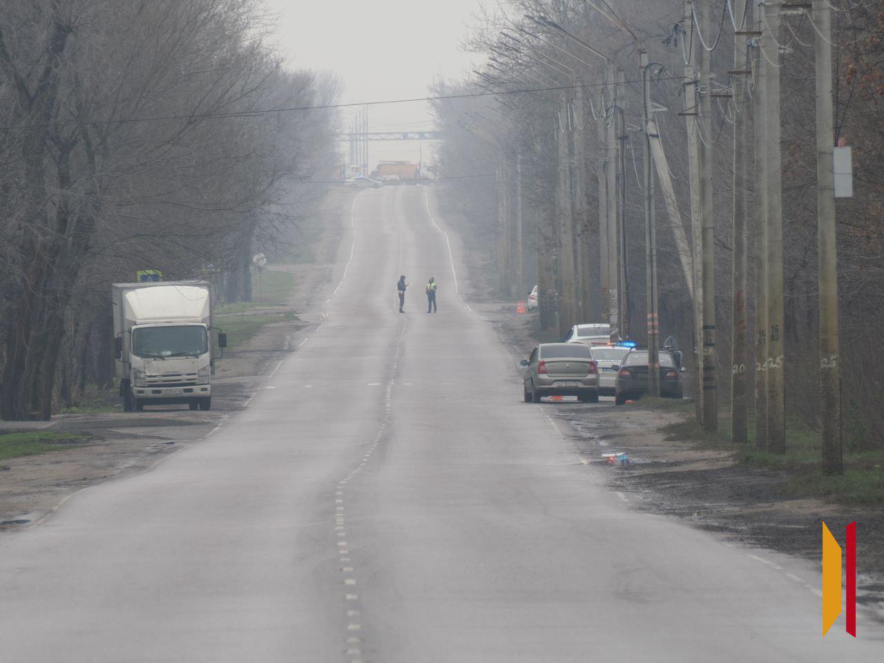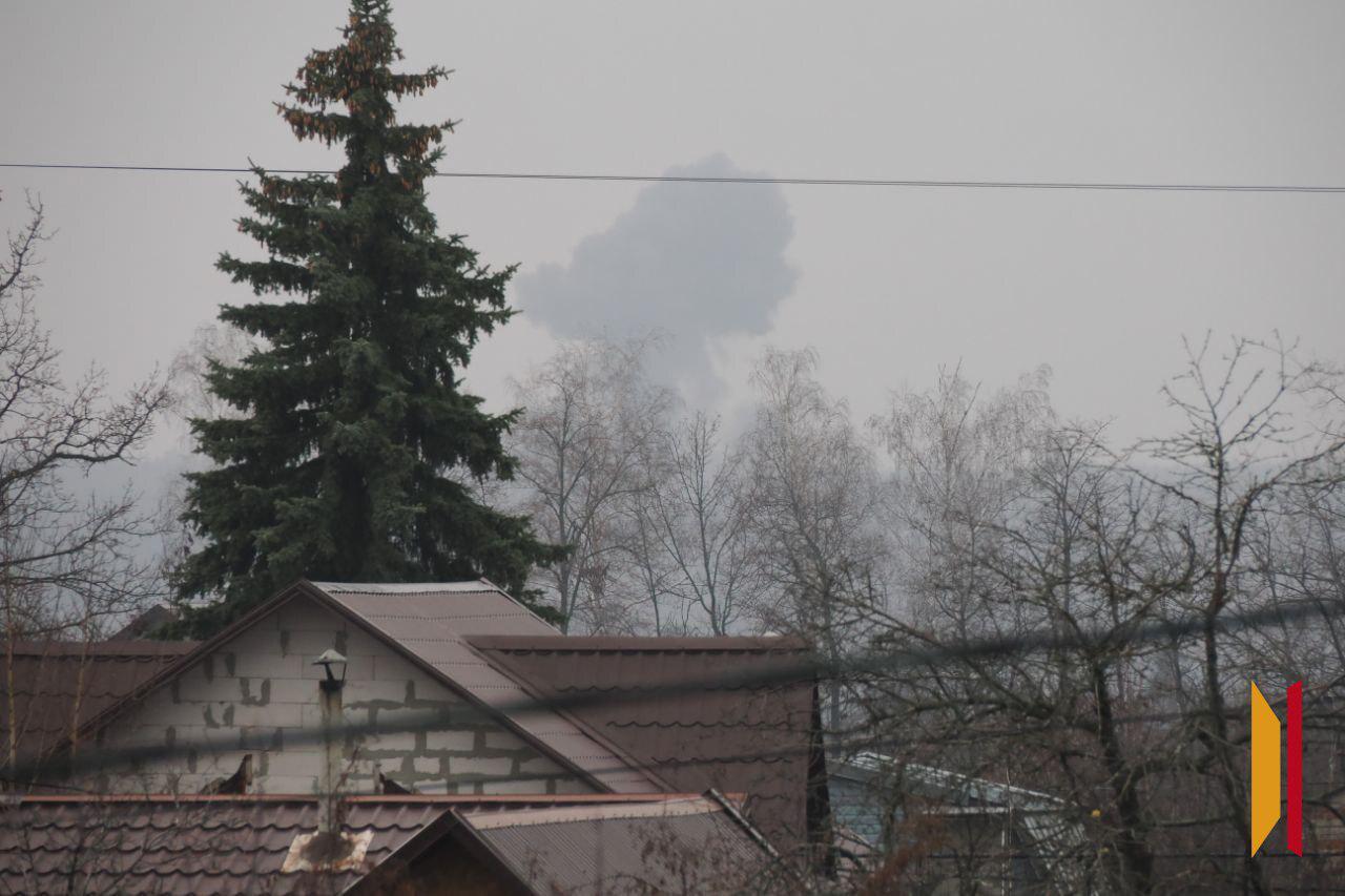 Обстановка на месте, где проходят подрывные работы взрывоопасных элементов от сбитых ракет ATACMS