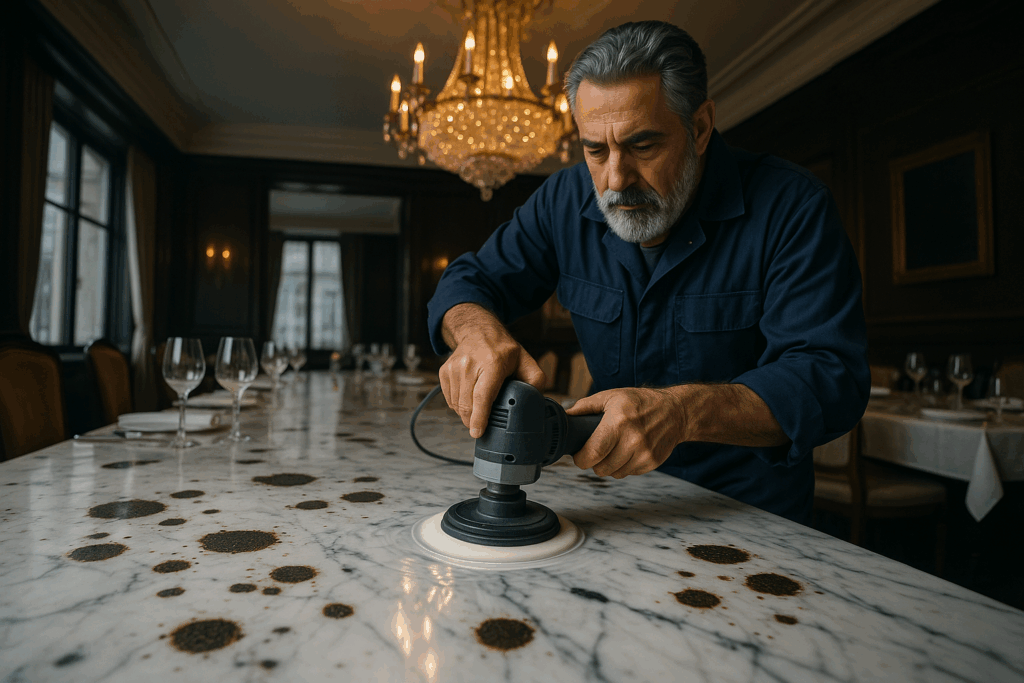 Мраморные столешницы в ресторанах – это не только символ роскоши и стиля, но и настоящая головная боль для владельцев. Каждый день они подвергаются воздействию десятков потенциально агрессивных веществ: от соусов и вина до горячих блюд. Столешницы, которые когда-то сверкали, могут потерять свой лоск всего за пару месяцев. Как же предотвратить появление непривлекательных пятен и сохранить красоту мрамора на долгие годы?