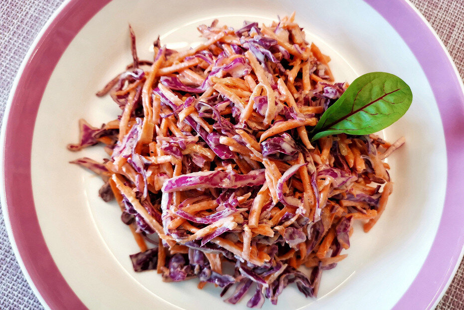 Салат из краснокочанной капусты станет не только украшением на вашем столе, но и отличным лакомством для всей семьи. Да и готовится он быстро и просто, что делает его идеальным выбором для любого повода.
