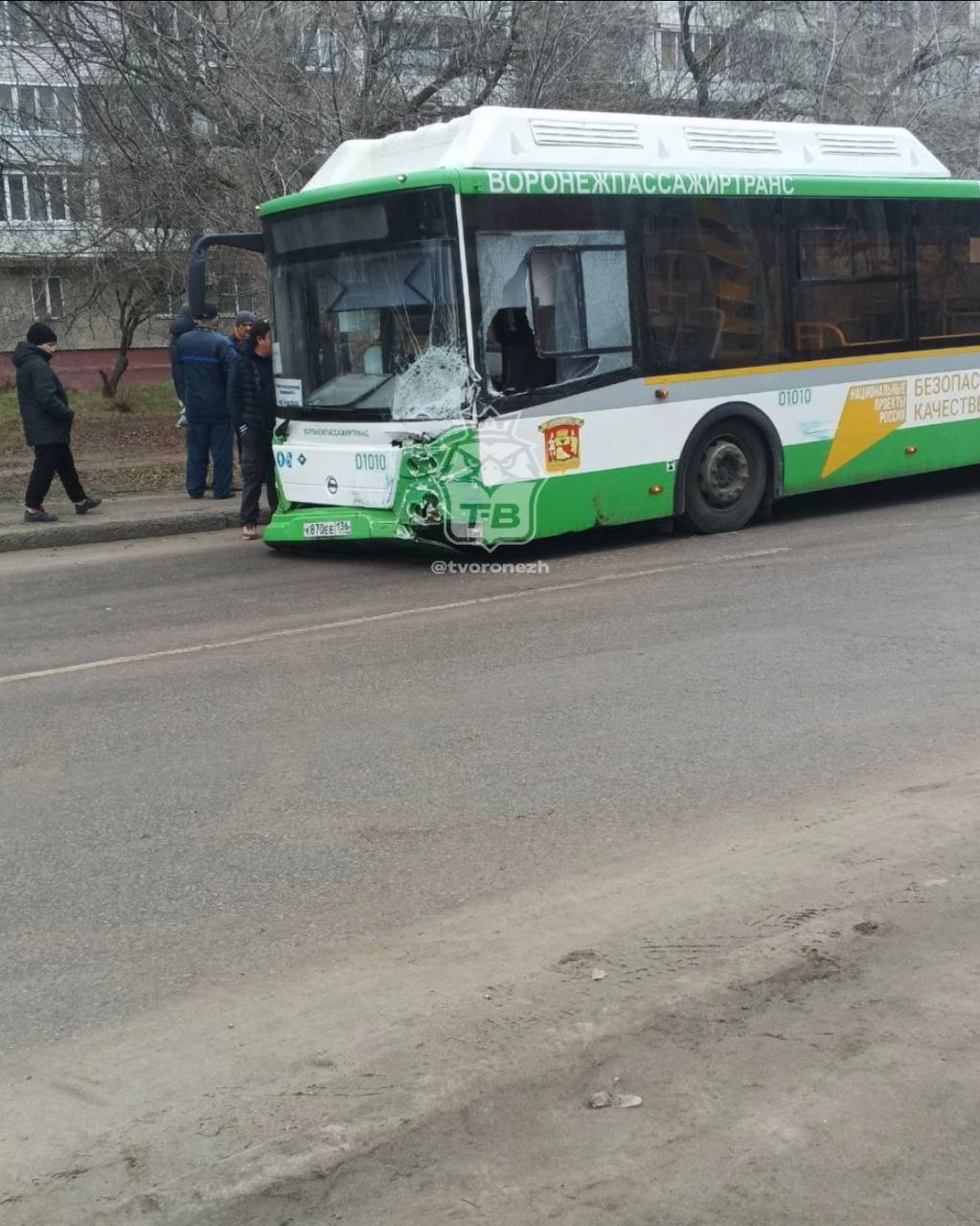 Audi разорвало пополам после столкновения с автобусом на улице 45-й Стрелковой Дивизии