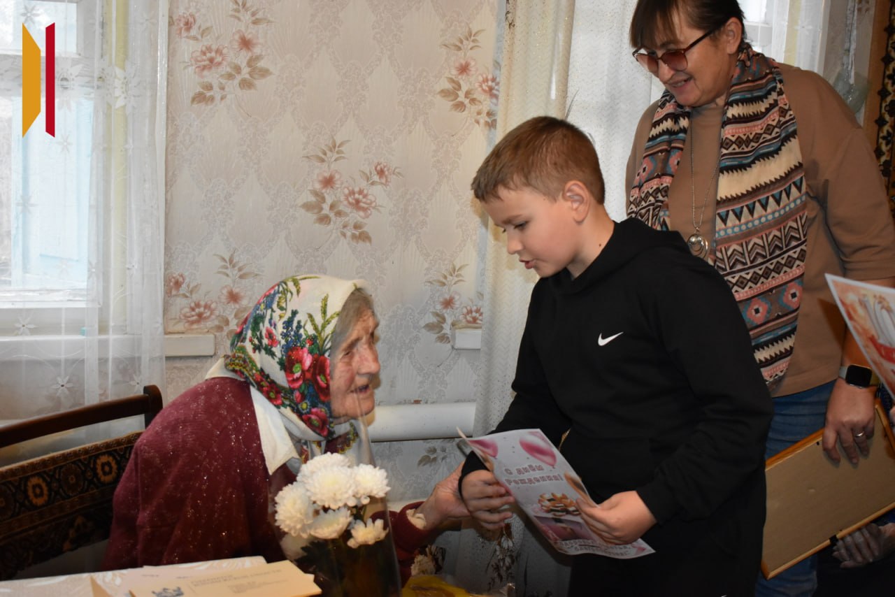 У долгожительницы Марии Мироновны два дня рождения: фактический — его она отмечает 28 ноября, и по паспорту — 20 ноября, эта дата возникла когда-то в документах ошибочно. На долю женщины — труженицы тыла, свидетельницы фашистской оккупации — выпало немало испытаний. В войну она рыла окопы, после чего очень долго и тяжело болела, работала учетчиком в военном штабе. В памяти навсегда остались страшные бомбежки. Но главное — радость после освобождения родного хутора от фашистов.