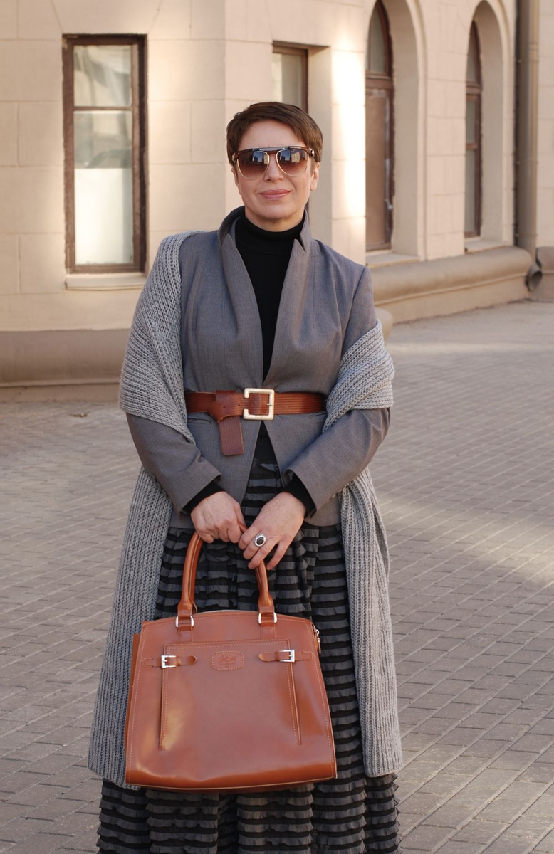 - Кардиган. Эвелина рекомендует выбирать кардиганы прямого кроя, длиной до середины бедра. Нейтральные расцветки, такие как серый, черный и бежевый, сделают этот элемент универсальным.