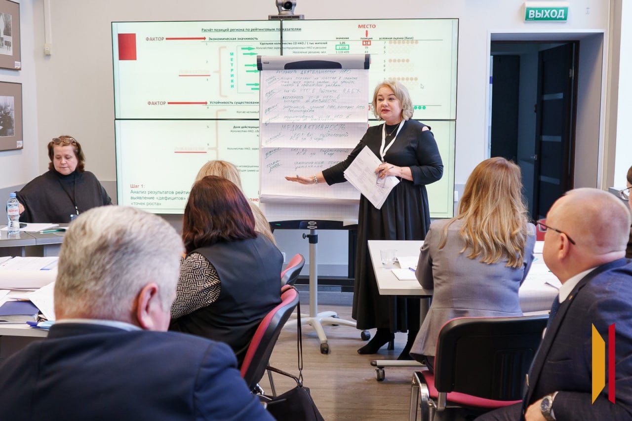 В ходе деловой игры участники разделились на четыре команды. Каждой из них эксперт Общественной палаты РФ Оксана Коротеева предложила выбрать две характеристики, препятствующие развитию НКО в регионе, и две точки роста, позволяющие наиболее устойчиво совершенствовать их работу. Следующим этапом стало составление четких рекомендаций для повышения позиций Воронежской области в представленных показателях.