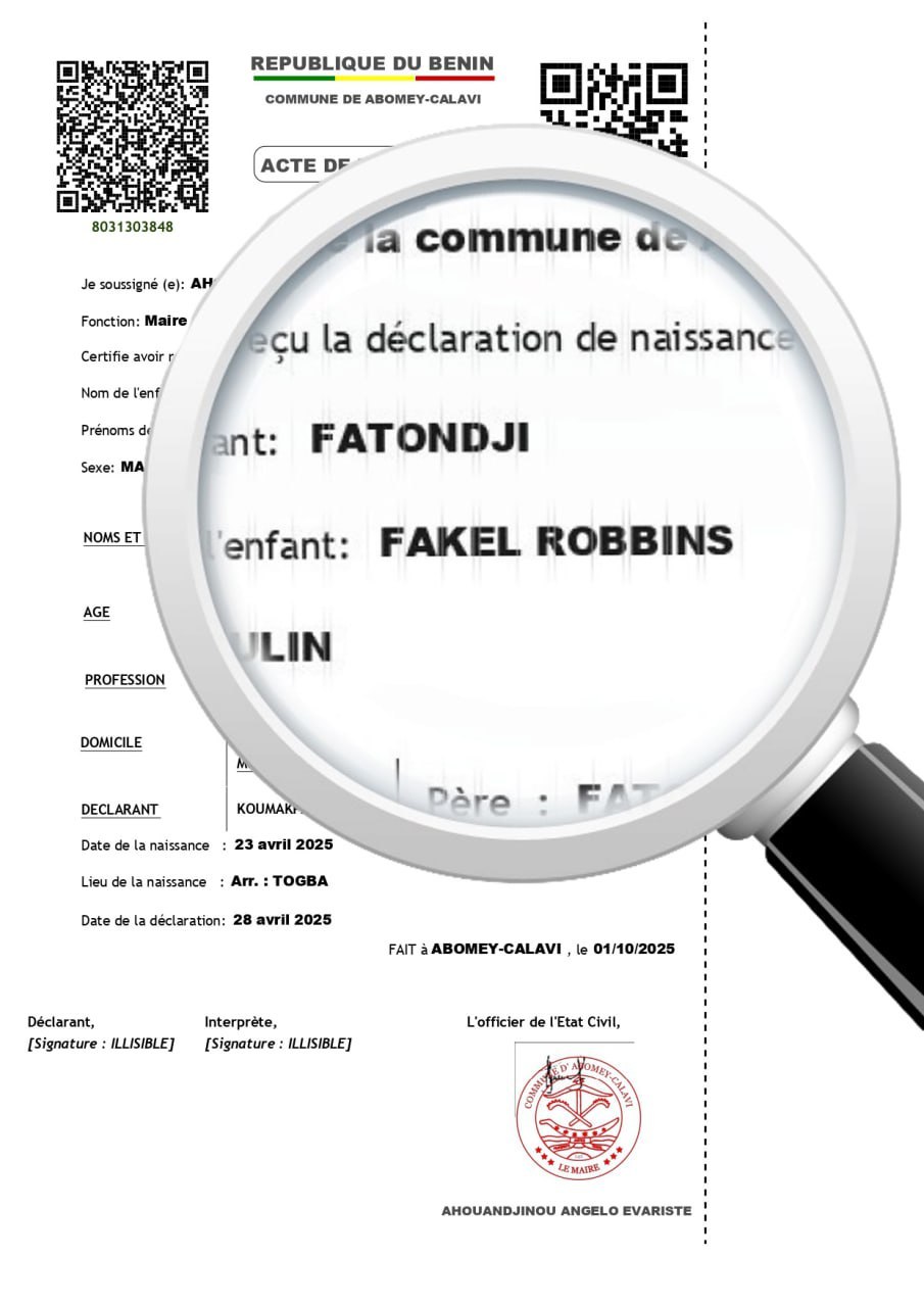 Мальчик родился летом. Тогда африканец Уилфрид Фатонджи решил, что мальчика будут звать Факел — в честь любимого футбольного клуба. Однако получить документы не удавалось, поскольку отец находился в России. Недавно Уилфрид Фатонджи вернулся в свою страну и самостоятельно сделал свидетельство о рождении ребенка. Теперь в документах написано Fakel Fatondji.