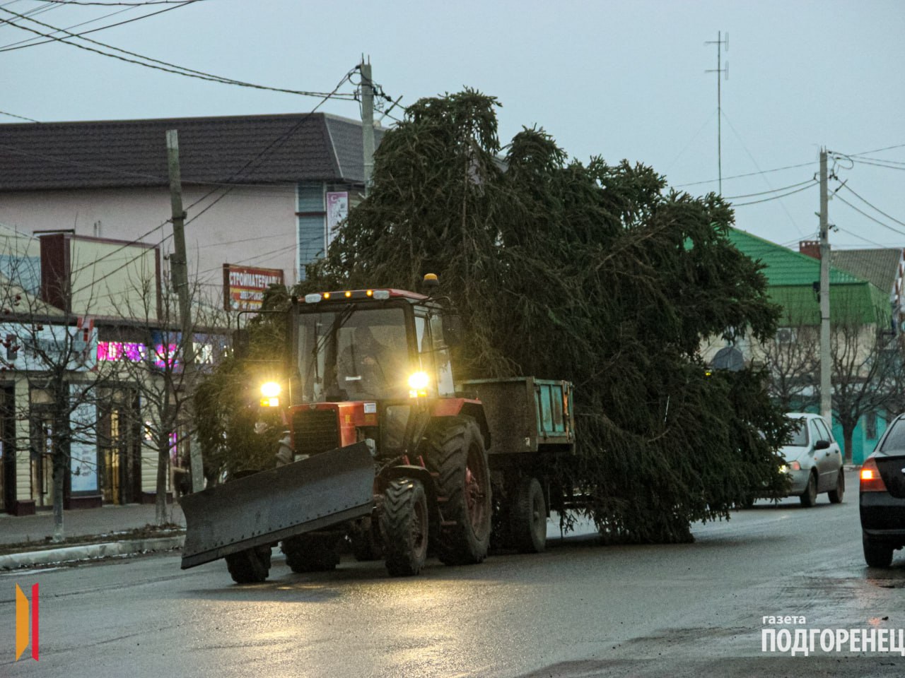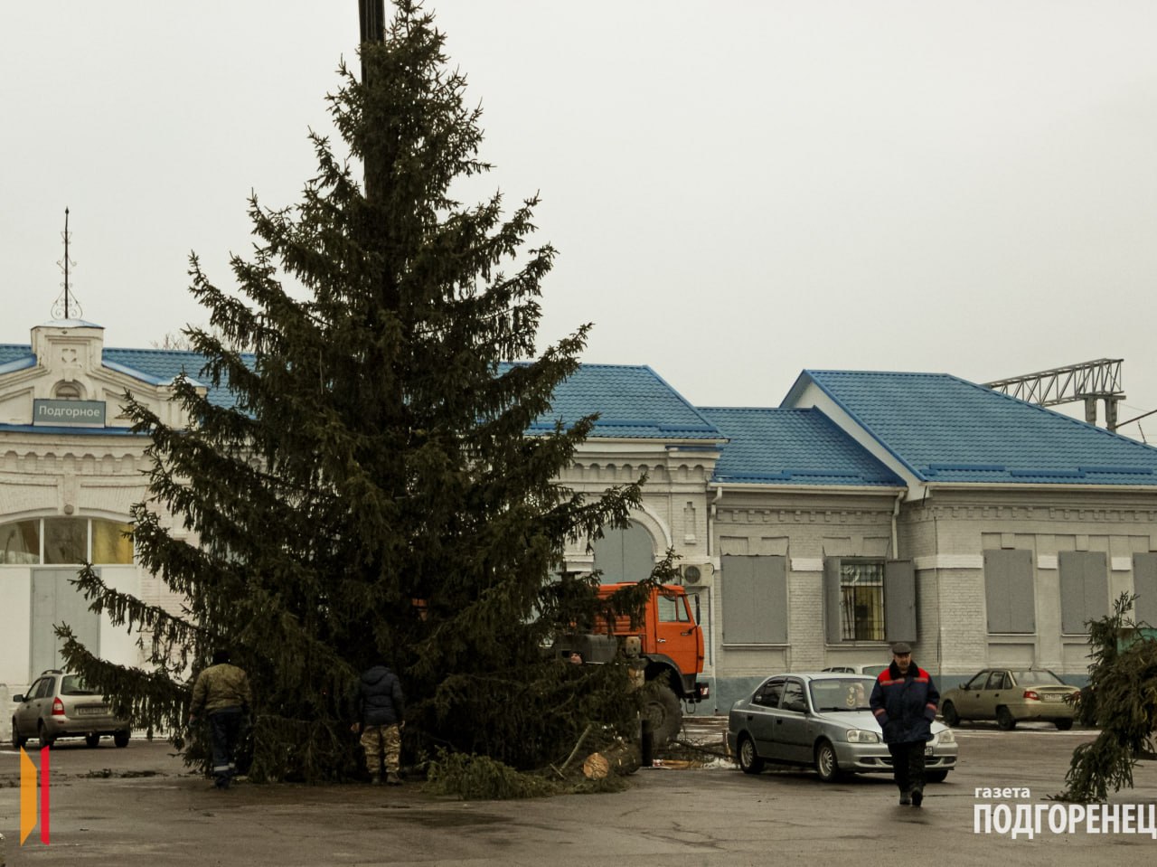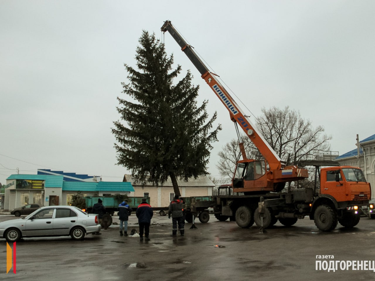 На площади в Подгоренском установили 18-метровую новогоднюю ель