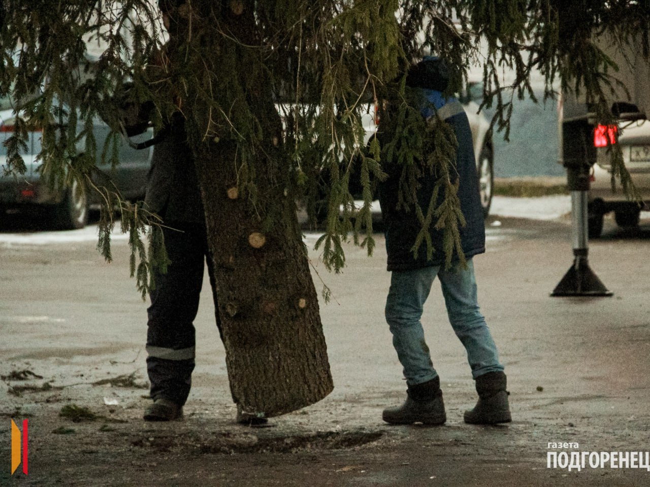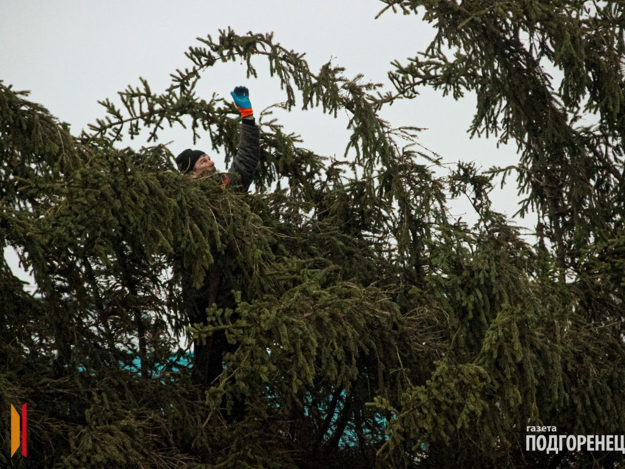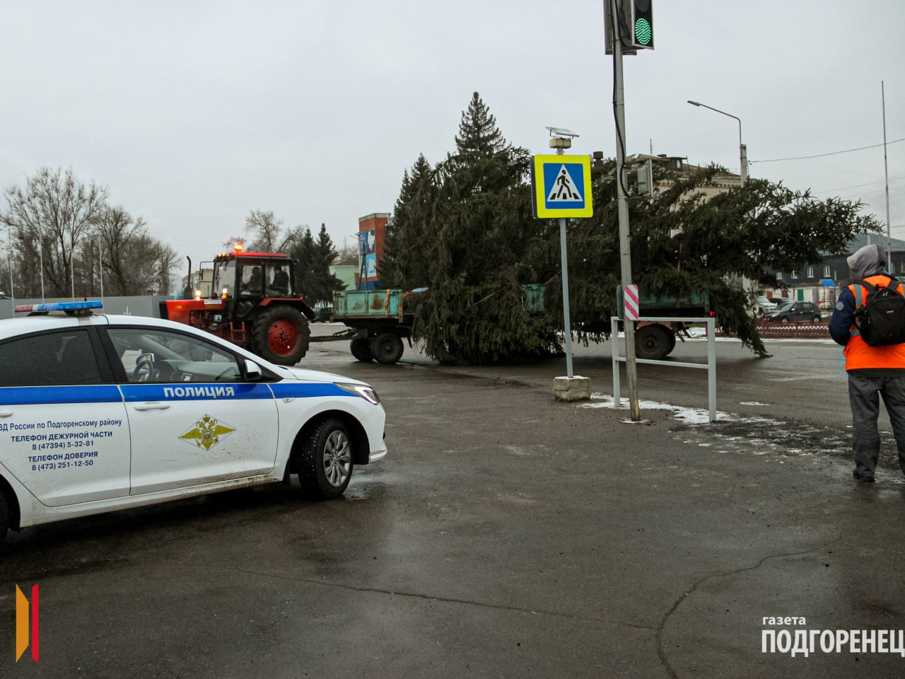 На площади в Подгоренском установили 18-метровую новогоднюю ель