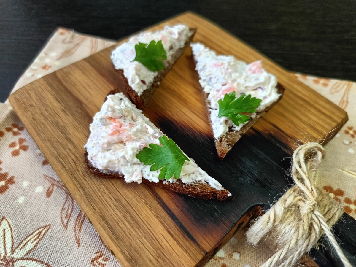 На завтрак, который оставит яркие впечатления, прекрасно подойдет сырная намазка, приготовленная с добавлением красной рыбы и икры сельди. Это блюдо не только радует глаз, но и обладает удивительным вкусом, который идеально сочетается с нежным черным хлебом.