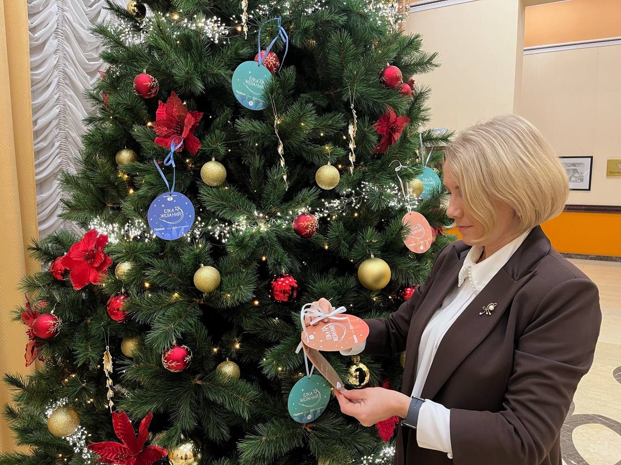 Елена Дерганова присоединилась к ежегодной благотворительной акции «Елка желаний». Она сняла с новогодней ели шар с желанием 10-летнего Кирилла. Мальчик мечтает о горном велосипеде.