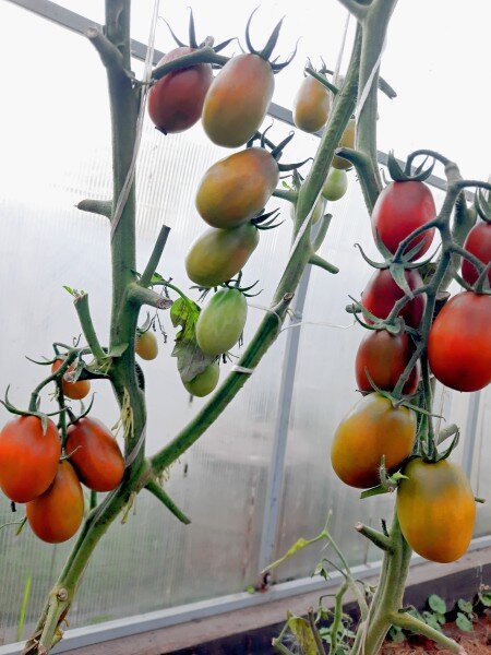 - «Де-Барао черный»: оба куста продемонстрировали одинаковый урожай. Хотя взвешивать плоды не было необходимости, визуально это было очевидно — кисти были равномерными, а плодов — одинаковое количество.