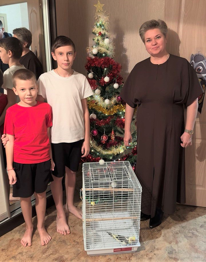 Министр природных ресурсов и экологии Наталья Ветер исполнила мечту двух братьев – 13-летнего Дениса и восьмилетнего Данилы. Ребята пожелали на Новый год получить в подарок небольшое домашнее животное. Наталья Ветер приехала к ним в гости и подарила попугая кореллу.