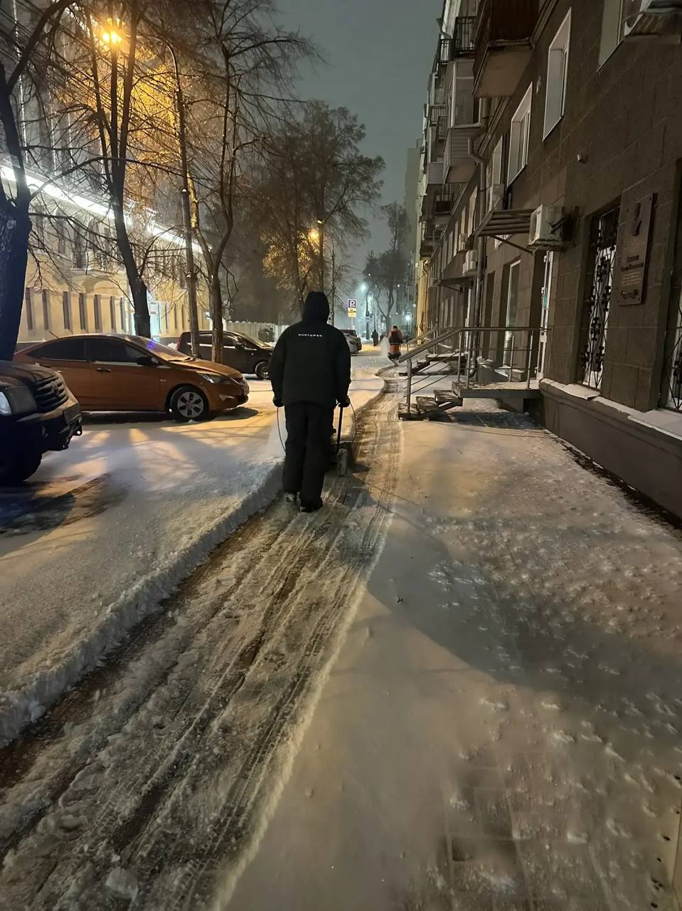 В Воронеже коммунальщики с ночи расчищают дороги и тротуары от снега