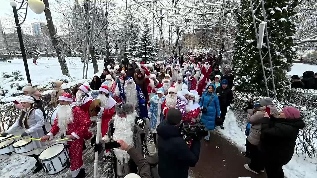 Парад Дедов Морозов после шестилетнего перерыва прошел сегодня на площади Ленина в Воронеже.